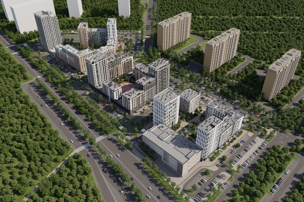 Уездные кварталы - семейный жилой комплекс комфорт-класса с авторской архитектурой и трехуровневым ландшафтным озеленением. Жилой комплекс находится в современном районе с развитой инфраструктурой. Вокруг есть всё необходимое в шаговой доступности: новые детские сады и школы, остановки общественного транспорта, магазины, кафе и рестораны, поликлиника, детская школа искусств, парки и спортивный комплекс.